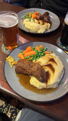 Lovely pub in centre of picturesque Beddgelert. Distinct impression from the two persons serving at the bar that non-Welsh speakers were not very welcome. Whilst obviously able to speak English, they would make a point of sharing what seemed to be a joke between themselves in Welsh whilst serving us. Left with the feeling that this joke was at our expense. I ordered gammon steak with chips and fried egg, my friend ordered fish and chips. The fish was a dry, thin oblong of the sort you buy from Iceland in the 'economy' section. The gammon steak was very thin, dry and overcooked. Both meals were, bizarrely, served with swede, carrots and broccoli. The chips were McDonalds style fries. We noticed that other customers were getting served with what looked like hand cut chunky chips. When the woman I presume to be the manager was asked why we had cheap fries and had not been served the plainly better chips, she answered "Well they can't have been that bad - you've eaten them". And off she walked. The gammon was ÂŁ13.50, the fish ÂŁ10.50. Steeply priced, even if they had been ok. They weren't, and were eaten as we were hungry. My friend complained to one of the waitresses and secured at ÂŁ5 refund. Fair enough, but the fact remains it was highly priced and very low quality food. All in all, very poor....