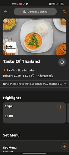 Ordered food at 1.45 was told it be here by 2.30 2 hours later and I'm still waiting. The time keeps getting pushed up and up. Cannot get hold of just eat for a refund and I cannot get hold of taste of Thailand. So I've lost £30 which I could not afford to do. Avoid this place. Should have stuck with beams as food always turns up and quickly and is hot . They weren't open so tired taste of Thailand. If you have money to lose go ahead. Extremely unhappy and will be pursuing a refund even if it means me going to that place itself . They replied to my review saying they are not on just eat but I beg to differ see photos of my order on the just eat app and the place listed on just eat .also reviews of other people on the just eat app and someone else that paid and didn't receive...