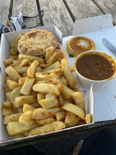 Read moreLooked for an evening supper after an early start, working all day and staying local. Pleasant and friendly welcome by a young staff of 2 girls and a boy. Nothing was too much trouble as I wanted to eat in but so nice I sat outside on their picnic benches. Large Chips, Pie and Fruity Curry ordered. Said they would bring out which they did with proper knife and fork instead of wooden ones as I’d asked to sit inside first. Piping hot and wasn’t disappointed. Chips were the best chippy chips I’ve had in a long time. They were crisp on outside, not greasy and fluffy inside. Pie was good and flaky, maybe could have been warmer but good. Fruity Curry was banging, great dipping my chips into. Felt well full and happy customer walked back to the hotel. Definitely call in again when i’m working...