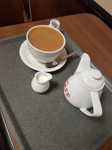 The person on the till got a terrible attitude, acting like she can't hear what we are saying. If your actually deaf get a hearing aid. Gave us attitude because we didn't want tuna with our food and this was before we actually ordered. Maybe she has something against gay people? We Sat at a table and it smelled like a toilet so we moved. Also what kinda cafe has a big menu but only serves like 5 things off it. What is that all about? Why say you serve food all day when you don't? 30 quid for 2 kids meals and 4 drinks is insane when the quality is so bad. Tescos finest? More like bad attitude. Slamming things around while making our drinks too. This place used to be so much better but Jesus it's gone to the dumps. Also who puts fudge in a toffee drink?
