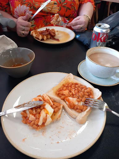 Read moreDine in brunch post shopping expedition 🙄 Mine was poached eggs on toast and baked beans, my friend had waffles crispy bacon and maple syrup, nothing fancy.