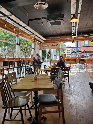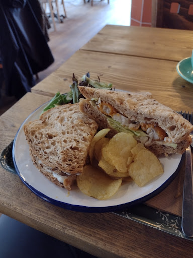 First of all, the food and coffee. The owner made me try their "world famous fish fingers sandwich" and oh boy! Bread was fluffy and thick, the sandwich was tasty and even the salad dressing was surprisingly good. The Victoria sponge cake was amazing, wonderful taste and moist, plus it was a real slice, not the tiny lego piece you get in certain coffee shops. The coffee is also really good! There are a lot of good specialty coffee places in Cardiff tho, so for me the star of the show was the FOOD. Later on, when I was contemplating my choice of diner, he offered to put a twist on my egg sandwich and yet again, 10/10, flavortown. My tastebuds were having a party. And it was so appreciated that he took the effort to make the sandwich even funkier than it was. Second point, the owner is so kind! He was incredibly accommodating and helpful and without being invasive, he made sure I felt welcomed. You can tell he really wants you to have a good day and tries to create something special in here. Last but not least, this place has so much to offer. They have lockers you can rent for luggage storage, a SHOWER, a small conference room type of situation, and pretty much anything for the bike fanatic. I don't bike but it's pretty cool that they offer workshops! The atmosphere is very relaxing and wholesome.