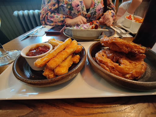 Then came the mains. Both of our first choices weren't available. Fair enough. My partner had the Hunters Chicken Schnitzel which is described as being covered in BBQ sauce and melted cheddar cheese. It came out and no sign of the cheddar cheese until you lifted up the fake melted burger cheese that had lathered on top. There it was, a miniscule amount underneath that. Who in their right minds puts that plastic cheese on top of what initially sounded like a tasty dish? Her chips retained a load of oil and this could only mean they were either recooked or had been cooked in oil not up to the correct temperature. Needless to say she left most of hers. My burger was served in a soggy bun that had gone soggy underneath. Again, presentation wasn't their strong suit as the burger sauce was all over the plate. I ate mine with a knife and fork. Despite mine not being worth the £17 we were charged, I ate it because, as my mum always said, I'd eat the proverbial with sugar on top. This proved that. Now, we weren't asked or approached at any point to ask if all was ok. The staff were run ragged, so, that's a possible reason for not approaching us, despite others being spoken to and offered the dessert menu, which we weren't. We were charged £56 for this and, luckily with a voucher we obtained from the company website before entering, it knocked it down to £36. We didn't complain at the time because no one was paying any attention. We paid and left. Abysmal service and food. We won't be...