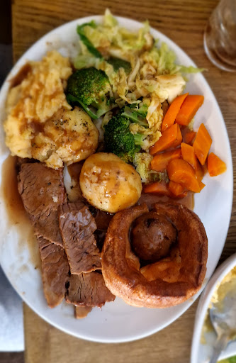 Bitterly disappointed. Having been recommended this place I had high expectations but was left unsatisfied. Service was okay and food arrived at a decent pace but over all the food was extremely bland. The veg was under cooked and cold, the roast potatoes were hard the gravy was like water and really lacked any body to it. t To be honest everything was well below average. Would not recommend for Sunday Lunch