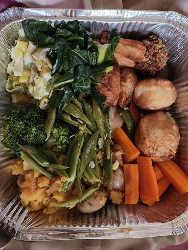 Now, cards on the table: I donât like turkey. But I dislike beef even more, so turkey it was⌠and honestly? Iâm eating my words (along with the turkey). It was cooked to perfectionâjuicy, tender, full of flavour. I only needed the tiniest pinch of salt to taste, which is rare for me because I usually season like a pirate. The roast potatoes? Crispy on the outside, fluffy clouds inside. Veggies and gravy ratio? Perfectly balancedâeverything had its place, nothing swimming, nothing sad.