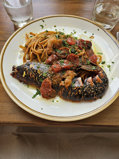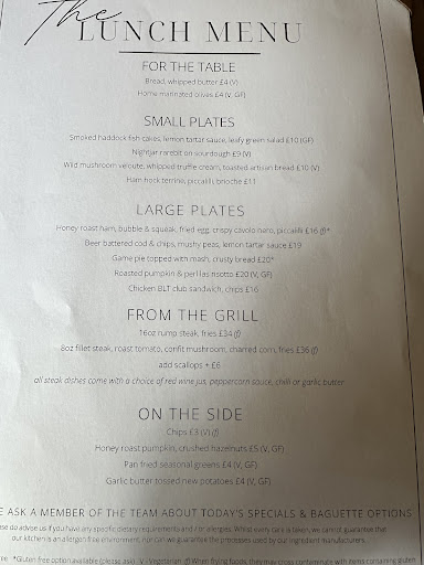 We visited with friends for a midday meal. The place was deserted at 11.30 am but soon filled up and is clearly very popular. The service was warm and attentive from a lovely blonde lady, and we were so pleased that dogs were allowed. The sun room (dog friendly) was somewhat sparsely decorated and felt a bit like an echoey garage; a few soft furnishings could help improve the space and the acoustics. We found most items on the main menu to be at a decent price point, and the drinks were very reasonable (£6 for a glass of prosecco is excellent compared to other restaurants). We ordered a large selection of starters to share, and they were delicious: the artisan bread and the burrata especially. There weren't as many non-fish options as we would have hoped, leaving little choice for the husband who can't eat fish. It was chicken or exceedingly pricy steak (32). I ordered the Lobster Linguine, which i found to be a little too rich: it was very dark, presumably from the use of the darker lobster meat in the sauce? The meat in the half shell of lobster itself was sweet enough, but i couldn't eat much of the pasta, especially as there were occasional tiny shards of shell. For £28 I confess I was disappointed as I'm used to a fresher, lighter sauce. We also thought it was quite cheeky to charge £7 for a pudding and then £1.50 on top for a scoop of ice cream. I've never come across that before! The location was gorgeous; right on the English/Welsh border, ample seating outside, and very cosy spaces within where it wasn't dog friendly. I would...