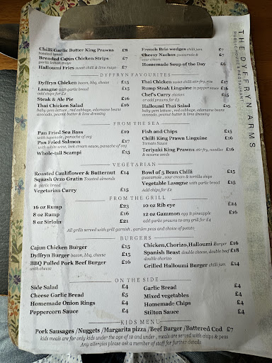 Read moreMaybe its just me, or maybe a mature member of staff here was having an off day? But this gentleman was in his 40s and should have known better! We went to the Dyffryn, got a table and thought we would order drinks first (a coffee and a pot of tea), we wanted to take our time. The mature gemtleman served me and pulled a face when I just asked for drinks. I got 'distain' as feedback from his body language, rolling eyes and facial grimace that he did not approve and expected me to promptly order food as well. Well that put me off ordering food after after the first round of drinks (and it remained our one & only round after the service from him). He took my payment and turned around walking away without a word leaving me standing at the bar with empty cup and saucer, full tea pot, milk, spoons and sugar, plus my overflowing coffee which he had spilled over the bar (I am sure it was overfilled on purpose). There was no tray, nothing for me to carry it all! I had to hunt down a very helpful young waitress (5 stars to her) who guided me to the tray stack (hidden around the bar) and I then carried the drinks back to the table. I WILL NOT GO HERE AGAIN, AND IT JUST STANK OF ENTITLEMENT. He came across as having an entitled attitude, maybe because I did not immediately order food maybe? Possibly, they feel you should order food immediately (thats how it came across, I'm an ex-teacher and I do pick on body language and other such signals quite quickly sometimes)? I have been told the same type of tale by several other local people, that found an 'attitude' there. Other than that, their prices are OK, the pub is lovely and there is a play park for kids. I would give 4 or 5 stars for everything else. Pitty about the really bad attitude I encountered. I was quite polite and did not deserve this treatment. I will go to the Bryncoch Inn next time (just a mile away) and have a service I can count on with more...