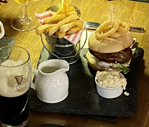 Read moreWent Thursday evening with friends for the Thursday special of burger and a pint for £12 We were greeted by Ryan, our waiter We sat in the restaurant which was warm and comfortable, but there was also a bar area with log fire We all chose a beef burger with bacon, fried onions, and relish. It was an ample portion of succulent juicy burger which also came with chips, coleslaw, onion rings and a jug of sauce for dipping Ryan ( our waiter) was the most delightful young man, he was friendly, courteous and polite,. He was keen to know we were happy with our meal but at the same time unobtrusive This place is dog friendly, ample parking, and also had a good vegetarian menu It was easily accessed so suitable for wheelchair users I will thoroughly recommend this pub/ restaurant and will definitely...