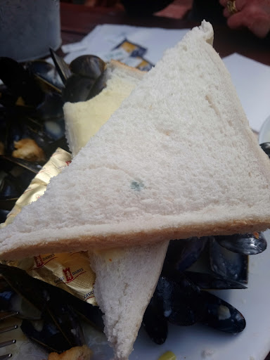 Read moreWe went here today, 1st real day of the season and Tenby was buzzing. We had to sit in the beer garden and had a table under the heater and cover. Jackie had a massive piece of cod, which looked lovely and she assured me that it was. I went for the mussels which when served looked very impressive, a huge pan of mussels were quite disappointing, they were small and gritty with lots of broken and empty Shells. I expect to get a crusty baguette with moules marniere. I had 2 triangles from a sliced loaf of stale bread but this wasn't really a problem as it was to dip and that would soften it. I bit the first slice and then Jackie pointed out the green spot on the other slice. I tried to complain and they were useless, the chef said I've thrown it away now I can't do anymore. The other staff seemed to think that if they ignored me I would go away. I eventually found someone who was prepared to deal with it and gave me a refund on...