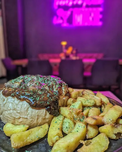 Giant fluffy cob roll filled with chive mash and and slow cooked beef, cooked in rich beef gravy and served with triple cooked chips.