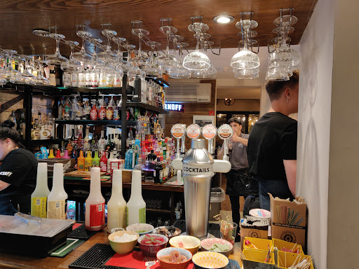 Read moreBooked a table for a meal for two on a Saturday 7pm. Arrived to find it was outside area and the seating was placed in the rain outwith the roof cover. People smoking cigarettes all around us. Bar staff inundated with a baby shower party and concentrating on serving drinks. I was told to return to our table and someone would be sent out to take our food order. Waited 25 mins and returned to the bar and made an order. Couldn’t get the chips replaced with a salad, they had to come with chips and salad. Couldn’t get the same sauce as creamy garlic mushroom starter for a sirloin steak main, I had an insipid peppercorn sauce that was thickened with cornstarch. (It wasn’t made with green peppercorns or cream) Sirloins were on the rare side of medium rare. The calamari starter with chilli sauce was nice though the sauce/dip tasted like a supermarket bottle brand. The creamy garlic mushroom starter was enjoyed by my partner. Overall not impressed with either the quality of food but especially the service. This establishment on that night was primarily interested in serving as many drinks as possible to a continual stream of revellers. The smoking outside in an eating area was a real put off. Go here if you’re on a pub crawl but not for food or a friendly...