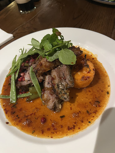 Although busy I havenât a bad word to say about the staff, all were super friendly and sorted us a fresh clean table for 2 after the previous eaters had left. We were greeted by a lovely lady who sent us to the bar to wait for a drink. My brother got a pint of Guinness and even though we grew up in Ireland he said it was a really good Guinness which is rare to get outside of Ireland. We were served by Rob M who was absolutely delightful. He recommend a dish as I was torn and said to try the lamb as it has been really popular I took his suggestion and wasnât disappointed. He checked on us to make sure we were okay for drinks and that the food wasnât going to be long.