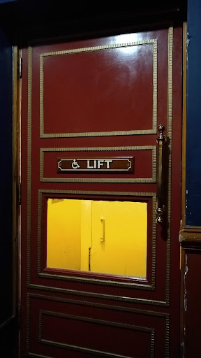 Once you get in there, it has a hand rail along the wall, and the lights come on as you get further along. It's even easy to miss the lift door once you're in there, and when you do find it, you might be put off again by the rather rickety-looking push-button platform lift (you probably know the ones...!). It's small and looks rather... well, rickety, but it's pretty reliable. I trust it; I've already used it several times quite happily, and I would (probably will do!) again.