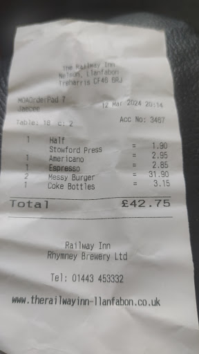 Read moreI have always enjoyed my experience at the railway. Which is why I recommended for a family get together. Relatives from the cayman islands. We were shown to our table only to be on 3 separate tables. Although close together we weren't able to make conversation. We attempted to pull our tables together but were told on no account not to do that as the waitress wouldn't be able to serve. There was plenty of room. I'm a size 20 and able to manoeuvre easily and safely. We returned the tables as told but the attitude of the waitress left a lot to be desired. However imagine our surprise when the tables behind vacated and they were immediately pushed together for a party of 12. I didn't feel that the welcome was there as it used to be. Also numerous times we were advised we had a 2 hour window to vacate. I had to ask for extra cutlery for main course as cutlery had been used for starters. It was brought to table with a dirty piece of kitchen roll in the cutlery dish. Very disappointed especially as we hadn't seen our...