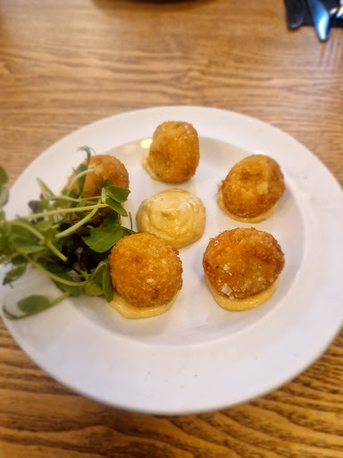 Read moreWe got a table for 2 easily enough without prebooking, the service was really excellent, and we were definitely well looked after and informed of changes to the menu. We eyed the sharer steak options for 2 and 4 people, but the Chateaubriand (steak for two) was out of stock. We did get to witness the T-bone steak for 4 people, as a gentleman was celebrating his birthday, and two of his friends shared with him - it looked lush! Definitely one I want to try if given the chance :D Back to our menu, the squid rings were lovely and not overcooked, and my wife's cauliflower wings were excellent. Our mains were the burger with chips, and a lamb curry - we were both very pleased with the dishes, so full of flavour. You could taste the chef's skill and passion had gone into them. The one hiccup of our meal was the wait time between service to order dessert, and this was due to the live band that had started in the adjacent pub section of the Rock Inn. Nevertheless, once we'd ordered our desserts and they'd been served, we were pleased once again. The crème brulée had a new twist with the macerated strawberries on top, which actually went really well. As a die-hard Frenchman, I found the change surprising, but also felt it escalated the dish to a new level of appreciation so thank you for broadening my palate. My wife's knickerbocker glory, which I finished, was darn tasty too. Happy to recommend this restaurant and will visit again...