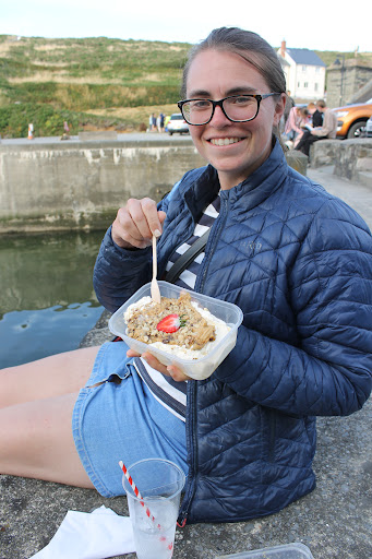 Read moreRecommended by friends who live locally and exceeded all expectations! (Booking required to sit inside). We enjoyed large prawns to start in a delicious sauce (which we reserved for chips...), followed by Haddock & Chips (half portions available) and then Affogato and a Banana Split to finish, sat out on the harbour wall. What a meal! Really tasty, fresh seafood; not at all greasy; perfect portion sizes.