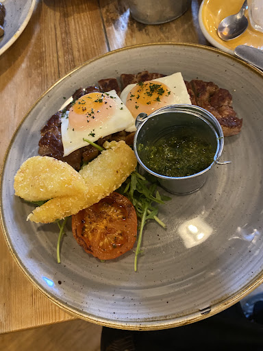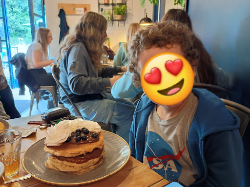 Read moreWhat a find! My son was desperate for pancakes and a quick Google search brought up The Swellies. We nabbed the last table and we were thrilled with the menu! It's rare for the veggie in the family to be spoilt for choice, so we knew we were in for a treat. We ordered a vegan breakfast, but swapped out some bits for veggie (mainly eggs!) a breakfast sandwich where you can choose any 3 items - it includes the veggie and vegan options so you can have a bespoke butty 👍🏻. I opted for bacon, halloumi and hash brown on a white roll and it was delicious. Then the little one got his much wanted pancakes - he decided on the adult stack, as there are 3 pancakes in this, compared to 2 for the kids meal. He chose Nutella, squirty cream and strawberries, but the berries hadn't been delivered so were substituted with blueberries. The portion was massive!! I'd planned on getting myself a slice of the lemon and blueberry cake I spotted at the till, but as some pancake was leftover, I finished that and it was superb. We all left with full bellies, and a bit of disappointment that we hadn't found this place earlier so we could revisit!!