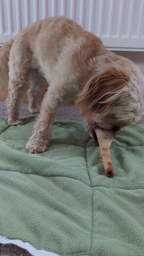 The lamb was cooked to perfection again and the little dog was delighted to get the 🦴 at home (she's munching away while I write this).