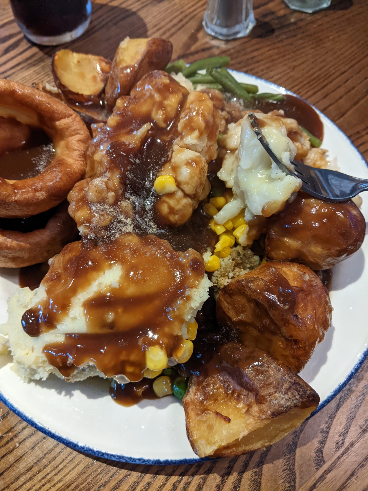 Recently visited with a friend for a carvery, I really donāt know where to begin! I booked online, upon entry, no host to greet us and direct us to our table. Staff saw us standing but did not approach. We just took a two seater table because that is what Iād booked. I have to say, the lady at the bar was very friendly and welcoming taking our drink and food orders efficiently. It doesnāt get any better from here unfortunately. Gammon looked lovely, we were given our meat and the staff member walked back into the kitchen. The vegetables on display looked very dry, there was no stuffing or carrots available to us. There were enough roasts for 2 people had they not been swimming in oil. The member of staff reappeared and I asked if we could have fresh roasts and also could he remove the lid from what I suspected were more carrots behind. In fairness within a minute, more potatoes were brought out in a steel bowl and tipped on top of the others. These obviously hadnāt been drained because another load of oil went in as well! Not very appetising I assure you, I ended up not having any. My friend decided to try 1 (proved too hard to cut). They forgot to take the lid off the carrots before disappearing again. I called out but nobody heard me. I saw a lady by the host station and asked if she could arrange this. All the time, food is getting cold. The worst part for us was when we went to add the gravy, both gravy pots were full of large gelatinous stomach churning lumps! I just could not have added this to my food. I spoke again to the lady that had helped me and asked if it could be strained. She explained that they couldnāt do that, although I donāt know why not. She took the one pot away and 2 minutes later brought another. In a nutshell, the food I had put onto my plate was acceptable but barely warm. Neither of us were able to finished our meals and skipped to dessert. Nobody came to removed our plates, so I had to put them onto the empty table next to us. I have to say, the ice cream sundaes were very nice, however, the toffee popcorn was missed off and brought out to me as I was halfway though. No disaster, but lack of attention. All of this can be avoided with more care and attention being paid to monitoring the quality of the food, and restocking where necessary to avoid customers having cold food. This is a fair and accurate review of our experience at this venue. I am not seeking a refund or apology, my hope is that Management will take this constructive criticism on...