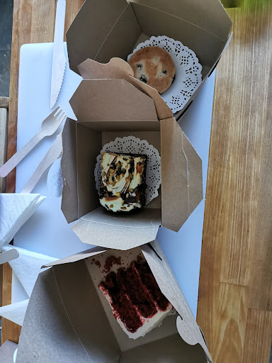 We had two oat hot chocs and a Welsh cake, red velvet and carrot an pistachio cake to take away. While we waited we were told there were things for our 2 Yr old in a play corner hidden at the back, an he loved it books, puzzles and colouring in. The hot choc was nice, as was the welsh cake. The red velvet tasted amazing but the texture was a bit grainy. The carrot and pistachio cake slice was amazing for a carrot cake but the pistachio flavour unfortunately doesn't come through, but as I love carrot cake and it tasted amazing il be getting it again for sure. The whole vibe was cosy, clean, calm and a really nice little toilet that even has a baby changing table. Def going again, next time to sit down and...