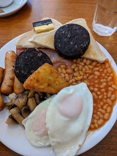 The food isn't great, it has a very generous FSA hygiene lvl 3 rating on the door and I can see why, I found dog hairs in my food, cups that look like they get rinsed and not washed in yrs and table covers that need a steam wash or even replacing. Personally, I'd give it a lvl 1. Staff friendly enough albeit they give the impression they rather be elsehwere. I wont recommend or eat there again, until the dogs are welcome inside sign has gone, it's had a thorough clean from top to bottom and the FSA give...