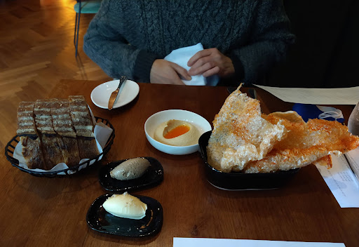We began with Angel Bakery Bread with salted butter and mushroom paste. The sourdough bread was fresh and delicious and the mushroom paste was dreamy. We also had Crispy Pigs skin with hummus and a smoked chilli oil, the pigs skin was still crackling when it got to us, the flavour was wonderful and the hummus with chilli oil was a perfect accompaniment.