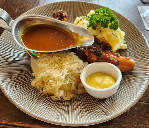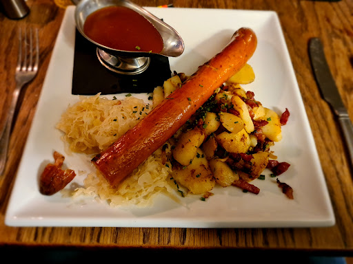 Read moreWhile driving north my colleague and I thought we'd figure out where to eat in Ruthin. I scrolled through the map, saying "Indian, Chinese, Pub fare" and stumbled across the Three Pigeons Inn, outside the town. Looked like a decent place. I always find that more removed places have a bit better grub. Well this menu caught my eyes with the half German food selection. That was enough. We both agreed. German food it was. It's not too far from Ruthin. It's only a couple miles down the country roads. We were greeted in the car park by a very small chef. Kinda Umpalumpa sized. Nice kid in an apron that directed us to the entrance. (Turns out he's a darts pro. Bullseye after bullseye all night.) The place was tidy and had a warm feeling. The pub section has a great collection of beer pump badges. The owner was very nice. Our food selection was the Fleischsalat, the XL Krakauer and the Jaegerschnitzel. It was amazing. Now, if you're not used to German food, it might seem a bit heavy. But, if you enjoy a big sausage with crispy chips, mustard and sauerkraut, or perhaps a breaded fried flat piece of pork, with chips, mushrooms tomatoes and some sauce, or Fleischsalat (google it, it's bloody lush), this is a great place. Toilets were tidy. Prices were right. Staff were friendly. Got there after a couple tables put in orders so it took a little while for the food, but we weren't in a rush so no bother. Totally understand, especially if this like many places is suffering staff shortages. Overall, 5 stars. If I can burn off the calories tomorrow I just...