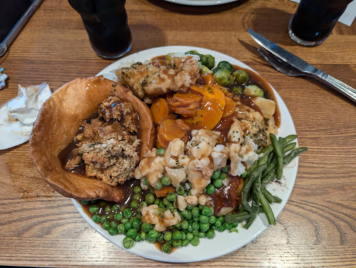 There was also a young waitress "working" towards the fire exit who kept on sneaking off to the toilets for long bathroom breaks. 🤫🏃♀️ We bumped into her in the toilets where she was playing with the sinks for an abnormally long amount of time.....🤔 Her uniform was incredibly grubby and had food all over it. (understandable due to her job but this looked like she'd fallen into the carvery!) 🤸♀️🍲 She was evidently trying to get out of cleaning because she kept hiding in the bathroom.