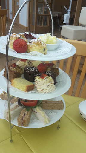 Tuna sandwich and coronation chicken sandwiches were good but not great, probably out of catering packs rather than being hand made on the premises, and not spread to the edges of the sandwich. Accompanied by a small portion of coleslaw, salad, and a few crisps, both dishes "filled a hole" as we were hungry, but we wouldn't rave about them. Pot of Welsh tea was lovely though, but obviously didn't require preparation as such. Enough for 2 1/2 small cups. Caffitiere of coffee gave just over 1 cup which was very disappointing for 3 quid!