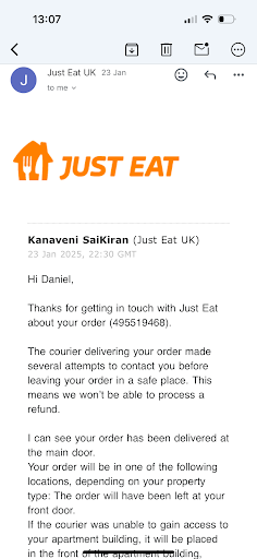 Read moreOrdered food through just eat these guys actually come under the name urban eats, my order was just under £24 but to my surprise 6.50 pm and my delivery time came and went and no food was delivered even though it said on the just eat website it was delivered so I called the restaurant and got a very rude man telling me there is nothing he can do because it’s a driver not employed by them directly but it was a just eat driver but it’s the way he spoke to me like he didn’t give a dam, so I contacted just eat on their app of course as customers conveniently cannot call them …only to be told the driver made several attempts to contact me (they made none) and apparently left my food in a safe place??? I live in a block of flats surrounded by 6 other blocks of flats 😡 I have a buzzer and nothing was rung by anyone!!!! And as a result they aren’t refunding me??? So I called the restaurants to a manager who said they have had problems like this before and they will contact just eat for me personally (they never did) now when I try to call the restaurant I get ignored or the phone gets disconnected… I’m very dissapointed that this wasn’t simply resolved by either the restaurant or a company as big as just eat it’s actually disgusting how they can get away with stealing from people with no consequences at all!! I’ve been forced into going to my bank for them to try and do something for me but as of yet nothing was done but I live in hope as this has really given a knock to my mental health and I cannot afford to lose money like that I’m not a rich man and a takeaway for myself is a treat that doesent come around...