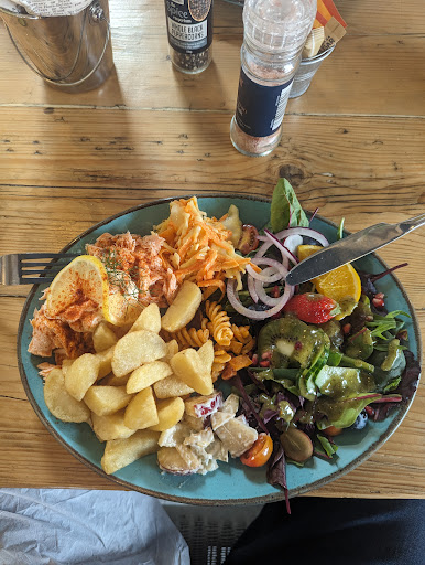 ย ย ย Read moreWhat a place to visit omg one of the best places for food on earth i went to the lobster pot opposite one night and the next day had lunch here hands on down I would say this place was 20x better value for money I would recommend the salmon salad with a strewberry cream tea to follow all very fresh food. Dogs welcome outside this place has grass and hard seating so great for people like your mum or dad even if disabled or has a Scotter. And after you finish there is a lovely short walk down a ramp to the beach (NO STAIRS HERE) some rocks at bottom but this is at the very bottom. I would recommend this place to anyone run by lovely friendly staff would know what they sell and are great with kids...
