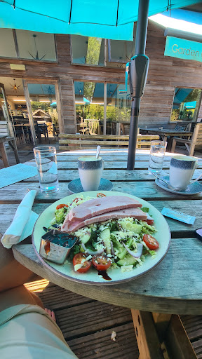 We visited today lunch time with torrential rain falling down. The main car park was full and we had difficulty parking on the road outside. Making our way to the cafe we saw that the side gate by the cattle grid was locked so we were forced to walk across the grid in our heels and with the heavy rain which wasn't at all safe for elderly people or small children. The cafe was surprisingly full (despite appalling weather). Staff were helpful, friendly and there was a nice atmosphere there. It looked lovely and clean. We all has jacket potatoes with side salads and were happy with the meals and portion size. Due to the weather, we didn't look at the plants for sale but there seemed plenty...