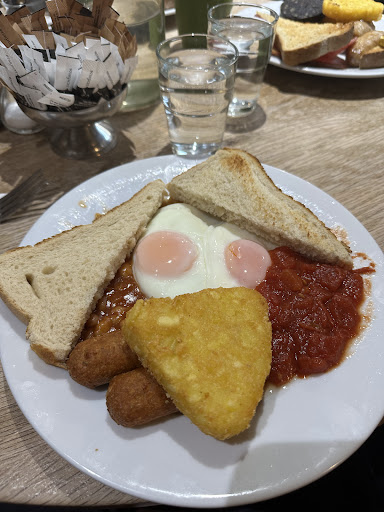 For the price it’s an absolute gem. Huge menu. Fast service. Not the best quality but for the price you can’t complain. (£1.70 for mushrooms on toast?!) smoothies good and mocha too! Veggie sausages not the best but everything else yum. Cheap syrup brand though