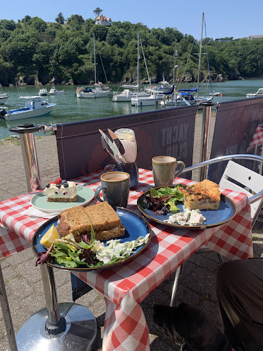 A perfect spot for lunch on a sunny day. This cafe is quayside at Lower Town Harbour in Fishguard. Our favourite local cafe. A good selection of delicious quiches (salmon or goats cheese for example), lobster rolls, crab sandwiches, huge freshly made scones and cakes and a delicious light cheesecake with fresh berries at the moment. Sit outside and watch the boats come and go. Dog friendly (outside, not sure about inside). Never sat inside, with a view like this why would you?! We had two mugs of tea, the quiche and a crab sandwich, and one portion of the cheesecake. It came to almost £35. Friendly staff, prompt clearing of tables. Also sell ice creams to wander to the end of the harbour with. Licensed. Note it’s not fully accessible - visitors with walking difficulties can’t really get inside. It has a portable metal set of steps which are quite steep. However I’m sure the staff would take your order outside if this...