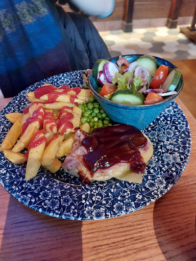I was looking for somewhere relaxing where I could have coffee and breakfast. I've been to this Wetherspoons before, and I like it. There is car parking very near, allowing 90 mins of free parking. There are four different areas of tables, including one under transparent cover, letting in lot's of light, It's an interesting and renovated old building, nicely finished in my view, with wall prints and local history prints and photos. The carpet was different, in a style and colour I liked. Next to the coffee machines there are several pieces of art. Food is the usual Spoons range, and for me it did the job. Service was good, and staff pleasant.