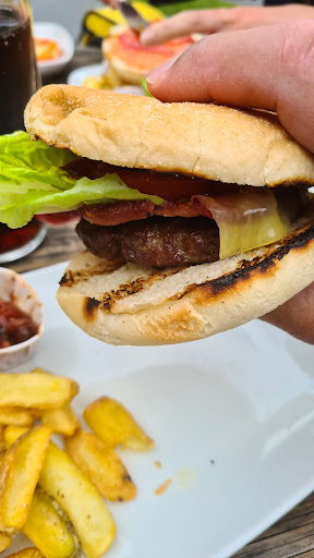 ย ย ย Read moreUpon arrival there was plenty of parking and the entrance was made clear by the many signs. After wandering through the restaurant we went to a table in the outside area next to the kids play area which was very nicely maintained. The table, even after being cleaned was visually dirty though. As it was raining, they came out with umbrellas which was very nice. For food you had to go down to the inside bit and order. In another review I read times here were fast but we ended up waiting for over 30 minutes. The food situation wasn't much better with it taking another 30 minutes. I had lasagne and it was alright. The burgers looked ok but the type you would get at small restaurants like another I reviewed today. The ambiance was very nice as a river was right next to our table and provided a nice sound for while we were eating. One of the burgers we didn't eat was kindly packaged up by the staff for us. Overall the place was alright. I would probably go somewhere else due to the price but if the price wasn't a factor I still probably wouldn't to but was a great...