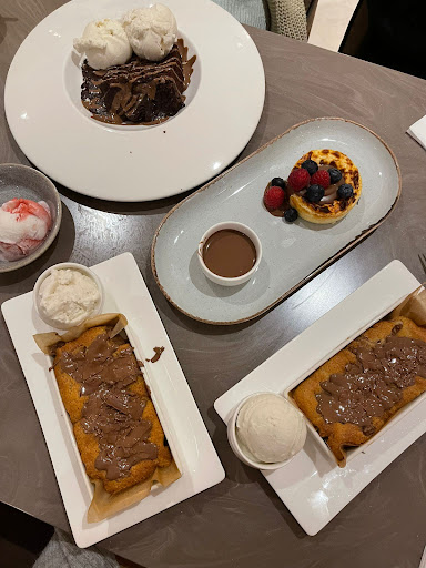 Read moreI've visited here a lot over the last 6 months (a few times each month- I know, I know!) and EVERY SINGLE TIME has been brilliant! A friendly member of staff always greets you as you walk in and sit you down. It's a stylish set up with nice booths so you can have a party on one table and a quiet couple on another and everyone still can hold a conversation and have a great experience. The menu is mouth watering- almost too much to choose from and something for everyone's taste. I personally would recommend the American waffles with their decadent chocolate sauce and strawberries or the white chocolate chip cookie dough with tart raspberries on top-stunning. We often sit and choose a couple of desserts each and of everything I have tried, they are all delicious- nothing has been anything less than that. Their ingredients are good quality and it's real chocolate- not like the pretend overly sweet stuff I've had at other places in Walsall. I also take away for neighbours, family or even my colleagues for the next day as a treat. Warmed up in the microwave for half a minute and still yummy! I think the best thing about this place is... (very tempting to say their chocolate sauce)... the staff. They are smart and so polite and friendly. They are happy to explain the menu, give advice and really just can't do enough to make it a positive experience. If you might go here regularly, I recommend their app which you can earn points on and use to get extras or even save them up for a free dessert! If you're not quite sure- give this place a try- you will...