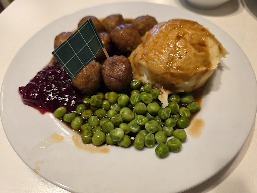 Read moreDecided to try the famous meatballs as I'd heard so much about them. The queue was like being in a school hall, a bit off putting, but we stuck it out. There was a few dessert choices at the start. I picked from the top shelf right at the back as the other shelves were perfect sneezing and coughing height. Some doors or covers might be a good idea! The hot food is served by dinner ladies, they are quick and efficient. The price for two meatballs, a drink each and a pudding was around £20. There was a lot of food, but expensive for what it is. The gravy and berry sauce was nice. I'm glad I've tried it but I won't go back. I'm sure they are the same meatballs that they sell in Iceland!! We had kids running around playing tag while eating in the dinner hall (think service station/school hall) which was really not nice. This wasn't Ikea's fault obviously but was still very annoying none the less. The dinner hall was clean and there were quite a few spare tables as it seems as one table sit another leave...