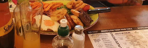 Always go in here some of the meals are nice. But Iām leaving a review as I went in a few months ago and my partner ordered a full English thing of the classic menu. When it come out the beans had looked like they had been sat on the plate for hours under a light to keep them warm. They was dry and crusty and we told the server and ask if the beans could be replaced. He took the plate and come back with to look like fresh deans in till my partner put his fork in them to see they wasnāt fresh beans just a spoonful of new beans had been placed on top of the crusty ones. So my partner told them he didnāt want the food and asked for a refund for both our foods as I wasnāt going to eat with out him and didnāt touch mine because of what was going on so they said they would refund for both meals and drinks of pop because of what had happened. My total was Ā£25.27 and because I payed on card I had to have a refund back to my card. When I was about to tap the card reader for the money back it had said Ā£11.79 so I questioned the man and said it was Ā£11.79 on the reader but he ASSURED ME!! That I would be getting back the full Ā£25.27. And itās was a fault with the reader!!!! The next day look and behold to see I only received a refund of Ā£11.79!!!šš» so I went in to speak to the manager a few days after for him to say heās sorry for what happened and he would send me a Ā£20 voucher threw email for my convenience. I give him my email and name and to this day 3 months after I still havenāt received absolutely nothing so I basically payed for food I never even hadš just a warning check when it comes to refund because look like they donāt care much about the customer when it comes to food and refunding them there own money. Worse thing is, I go in there constantly for food and drinks and have spent a lot of money. I havenāt said another again because I donāt feel like I should of had to. For a manager he should of done his job. He still sees me after all of this and donāt bat a eye lidš absolutely unprofessional BUT AY YO AS LONG AS THEY DONT HAVE TO GIVE PEOPLE THERE MONEY BACK HES...