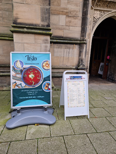 Read moreLocated inside the church, the cafe offers a variety of drinks (coffees and soft drinks), sweet and savoury pancake options and a chance to try traditional Ukrainian food such as borscht (soup) and deruny (potato cakes).