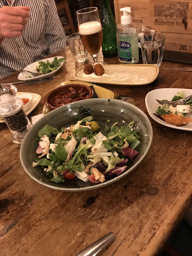 The vegan 'sharing' platter was predominantly a serving board of salad with 2 (very) small falafel pieces, 2 small stuffed vine leaves, 2 slices of bread and a very small saucer of hummus. The Spanish 'sharing' platter (£27) was no better with equally small portions. I understand the concept of tapas but when you're paying complete meal prices, its difficult to not feel frustrated with such small portions. We made the mistake of ordering more food, this time off the tapas menu as opposed to the sharing platters, as we were all still hungry. Again, all dishes were very small packed out with salad with a high price tag.