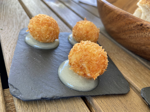 First up canapés. The least good course. Cheese balls. Very nice mind. Creamy gooey cheese encase in a crisp batter with either apple or Mayo.