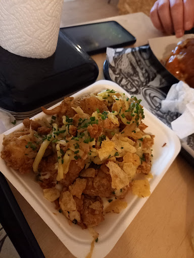 I first visited on my own, and I ordered the coq burger for takeaway, I was really impressed with the flavours, and service. I was offered a glass of water whilst waiting which was a nice gesture, So I returned the week after with my partner. My partner ordered the coq burger and the Chinese inspired fries, and I tried the wings. I went for the miso glazed ones, and i ordered a side of the kimchi slaw. Unfortunately apart from the coq burger everything else was quite disappointing.