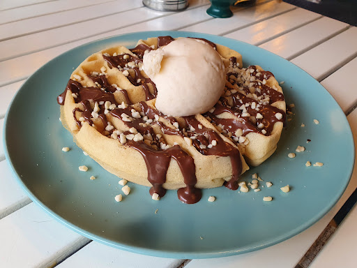 As a student I often look for places to study in and this place was brilliant. Unlike some of the more negative reviews I have had very different experiences here as I have been coming at least once a week. I am someone who hates waffles and prefer crepes but having tried several dishes this place may have changed my mind about waffles. The consistency of the waffle is excellent every time and a generous amount of topping with good servings for the price. The gluten free waffles are just as good as the normal ones which I was afraid of but this place did not disappoint. The waitstaff is knowledgeable, friendly and very attentive. The baristas have been also excellent adjusting coffees to how i prefer and to my dietary requirements. I have usually around 2-3 different coffees because I usually sit all day there to get work done and every coffee I’ve had has been excellent and on the rare chance it wasn’t the order was amended immediately and politely. The managers and staff make sure to always ask for my student discount which I also appreciate. The place is usually quite full on weekends which I guess shows it success and is also dog friendly which is a joy. The managers are also polite and attend to any issues diligently and fairly. Overall a happily surprising...