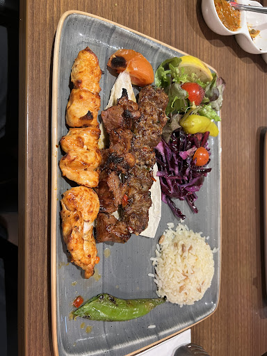 We have been here before, and had a lovely meal, food was good quality and the service was excellent. Unfortunately, it was not this time the food was mediocre at best. We ordered 2 lamb shish and 1 mixed shish. I asked to swap the rice with chips as I do not eat rice or grains, to be told that they won't do that as they were throwing away far too much rice, and they could change it to bulger so I looked at the menu again to change my choice, but there was nothing else I wanted so I decided I wouldn't order anything. That went down well with my wife....not. It was only when my wife said she would not order and my son wouldn't either. Only then did the waitress go and speak to the manager to ask if we could change the rice to chips, so the manager came over and said for me, this time he could do that. The food came out, the lamb was overcooked and chewy, and one small piece of tortilla wrap, a warm tomato and a small salad bowl for 3 of us, and for the money I was disappointed to say the least, on the quality and service. To be honest, I would rather spend my money else where. Last time was really good, as I said, I feel they have shrunk portion sizes and the quality of their food but are still charging the same prices....