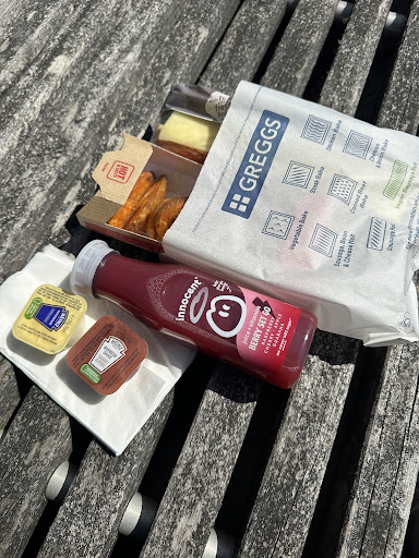 Read moreThis is a typical Greggs. Only four tables (I was lucky) and lots of sweet and savoury treats on display. I ordered a bacon and sausage roll which was ok, but not "greasy spoon" ok. I have been asked to give a star rating for Atmosphere and I gave one star. That's because it's an average Greggs and it has...