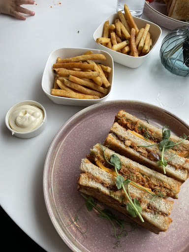 I visited today with my friend and her 18 month old. We had no welcome at all, and were left to find a table ourselves. No one came and welcomed us or told us to order online. The food was very pricey, you definitely pay a premium, likely because of how luxurious the place looks. We ordered the club sandwich and “skin on fries”. An iced coffee was over £5 and it was so small and narrow. The club sandwich was so spicy, yet nowhere on the menu did it have the warning with a chilli or anything to say it would be spicy. Unfortunately my friends child had some as we hadn’t thought to try it, and he was screaming in agony because it was so spicy. Absolute negligence on the restaurants behalf. The chips were also not “skin on”, they were literally a few oven chips. We also had to pay for sauce, probably because they put it in a china dish.