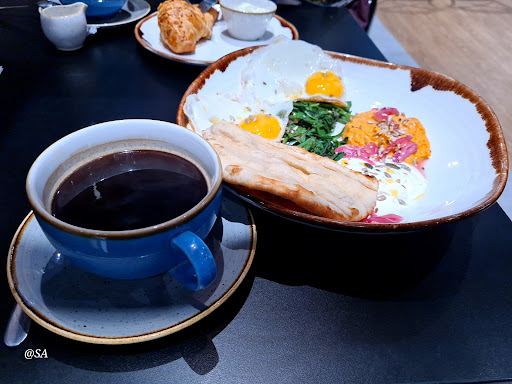 The coffee was surprisingly good, but let's be real, coffee when avoiding the shops, should always be good. The real test was the food, and it passed with flying colors in the presentation and taste department. However, for the price, you expected a little more generosity - throwing in another pita with your ÂŁ9 eggs isn't too much to ask, right? After all, a happy customer is a...