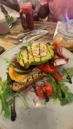 Read moreThe establishment provides an exceptional dining experience. The food preparation is meticulous and conducted in an open kitchen, allowing customers to witness the culinary process. The menu offers a diverse selection of dishes, each crafted with fresh ingredients and tantalizing flavors. Notably, the goat cheese and fig sandwich leaves a lasting impression on the palate. The beverage selection is equally impressive. The restaurant provides ample seating, both indoors and outdoors. Upon placing an order, customers are informed of the preparation time, and their meals are promptly delivered to their tables by courteous staff. One minor area for improvement lies in the table surfaces. While they appear to be wooden, they tend to become sticky after being wiped, resulting in an unpleasant tactile sensation and odor. It is recommended that the establishment enhance its hygiene practices in this regard, particularly with respect to the table surfaces and...