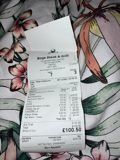 Read moreVisited here on Saturday with some friends. Our table was booked for 7.30 and was booked 2 weeks prior to this. We arrived on time and I think waited 20 minutes to be seated at our table. We ordered some drinks and starters and the starters didn't arrive until 8.45. One of my friends had ordered a salad from the cold starter menu, it showed up warm and was essentially a massive hot tomato with melted mozzarella on. Others had ordered camembert which showed up with maybe 4 little crackers and had cost like £10 so they ended up with left over cheese. Or eating it with their fork. After waiting so long for fairly disappointing starters I was feeling apprehensive about staying. What really didn't help this was the fact there was a huge family seated behind us with some terribly behaved children. I mean like, screaming, punching, throwing things and just generally ruining the atmosphere for anyone near them. The waiters had SO much patience when dealing with them. After starters I had asked how long for mains as our party was just really wanting to leave. We were told 15 minutes but I just didnt buy it and seemed like they just wanted us to stay. The table behind us had been there longer and still had only had their starters. When I popped down to till to notify management we were leaving they told me my food was cooked and gestured towards the kitchen- which is tiny?! And there was no food there, stuff cooking but nothing plated up at all. The wait staff I think were really trying but the whole restaurant was just off, I'm not sure where the problem is, maybe the kitchens too small or it's just managed poorly but I would for sure avoid this place. I think if you catch them when they are quiet it might be OK but for the prices etc it seems they have hugely missed the mark. We ended up in five guys and I have zero regrets. Oh and the steaks come with a few baby potatoes that they count as garnish so can't be swapped and all and any side for your steak is charged separate. Its quintessentially a kebab shop trying to run a...